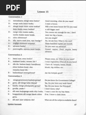 Part 02 Spoken Kannada Pdf - I can speak as well as write kannada and english fluently.